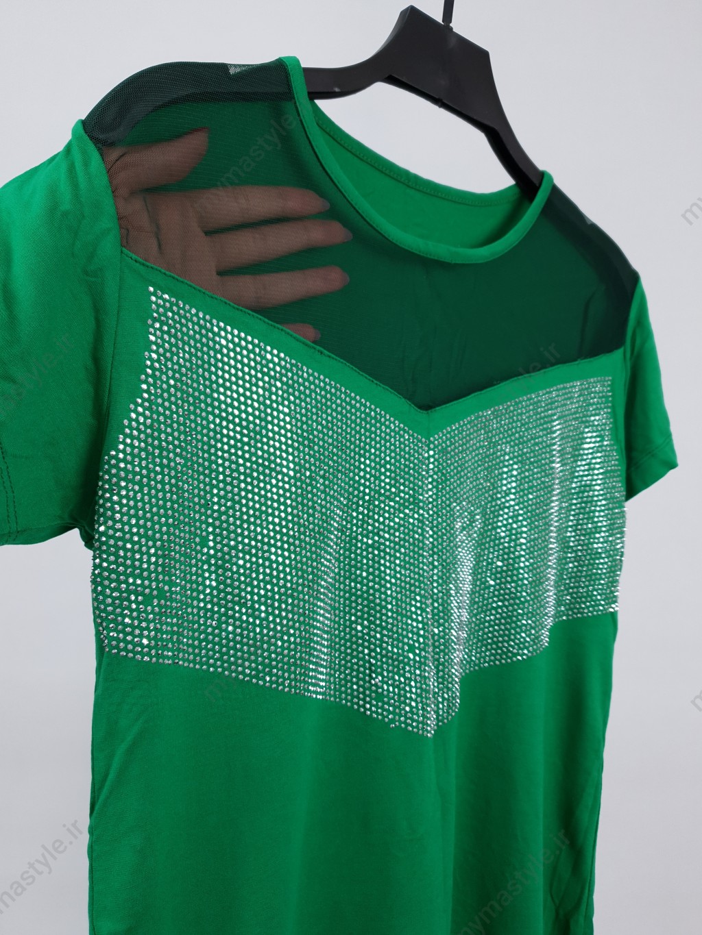 تیشرت زنانه نگینی سبز یقه تور