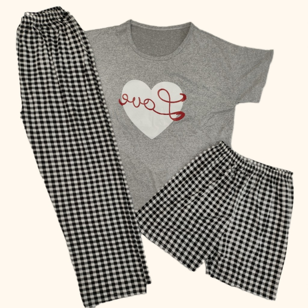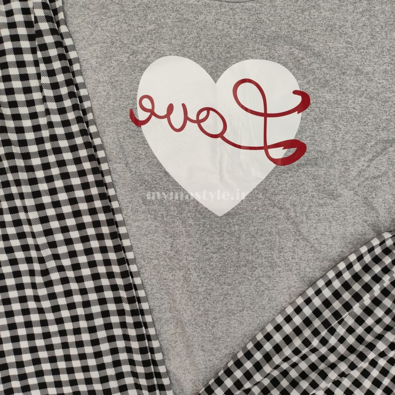ست خنک و لطیف با طرح عاشقانه قلب LOVE، مناسب تابستان و استایل خانگی خاص و دوستداشتنی.