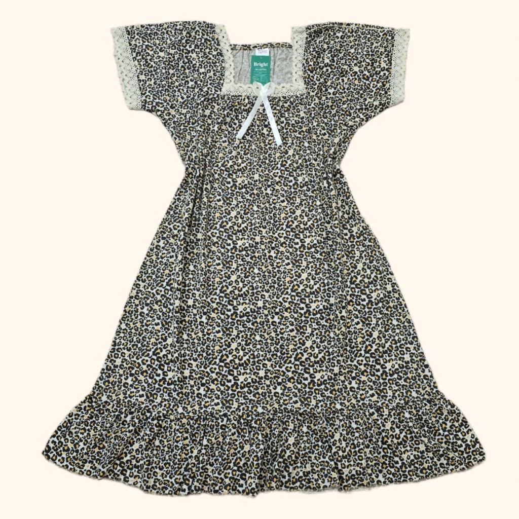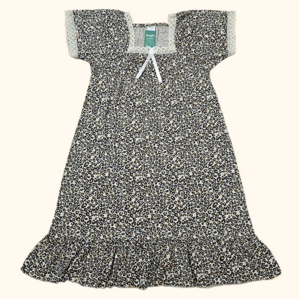 پیراهن زنانه آستین کوتاه پلنگی با یقه تور وارداتی از میما استایل – فری سایز، جنس نخ پنبه عالی، شیک و خاص برای استایل روزمره و مهمانی.