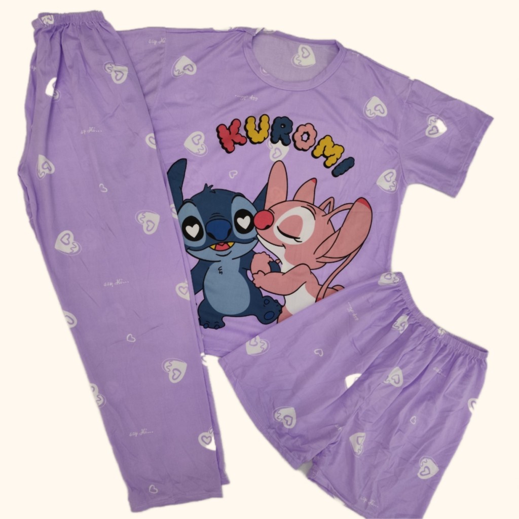 ست خانگی فانتزی و شاد با طرح استیچ، انتخابی راحت و خاص برای تابستان و روزهای گرم.
